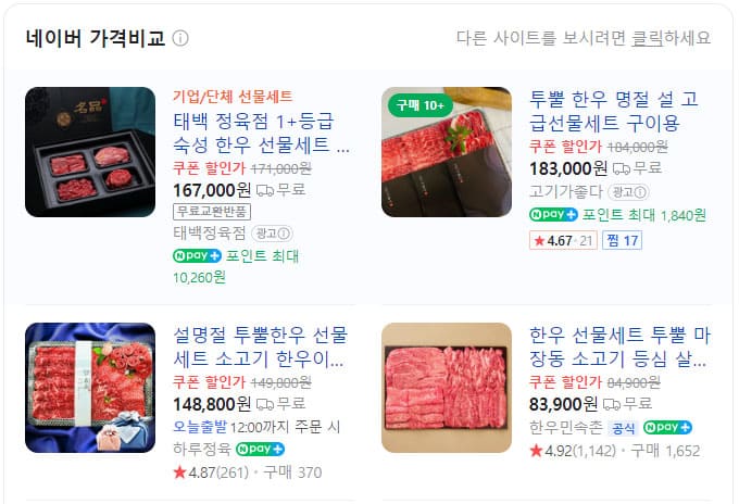 명절 선물의 대표주자인 한우 세트는 여전히 인기가 높습니다. 1++ 등급의 프리미엄 한우로 구성된 선물 세트는 부모님께 고급스러운 식사를 대접하는 효과가 있습니다.
