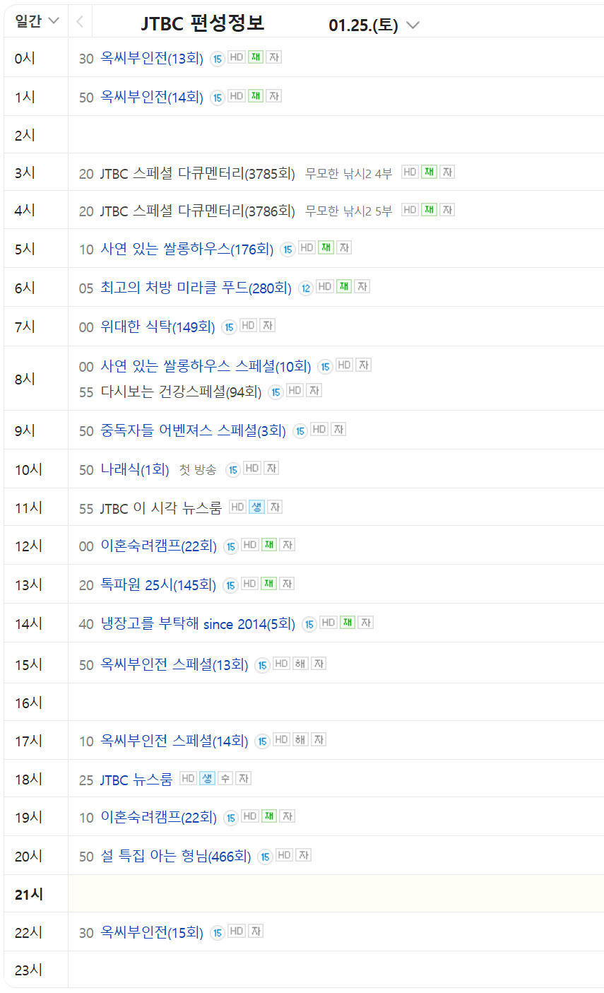 1월 25일  JTBC 편성표