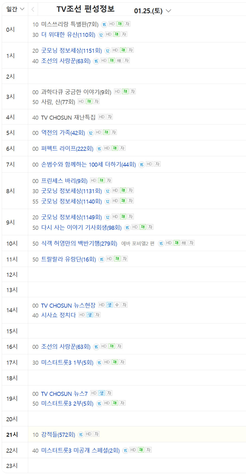 1월 25일  tv조선 편성표