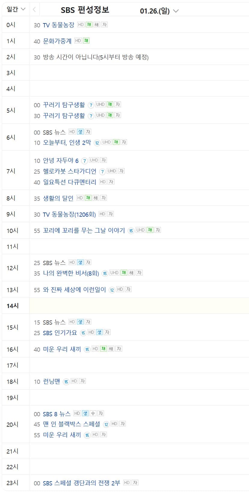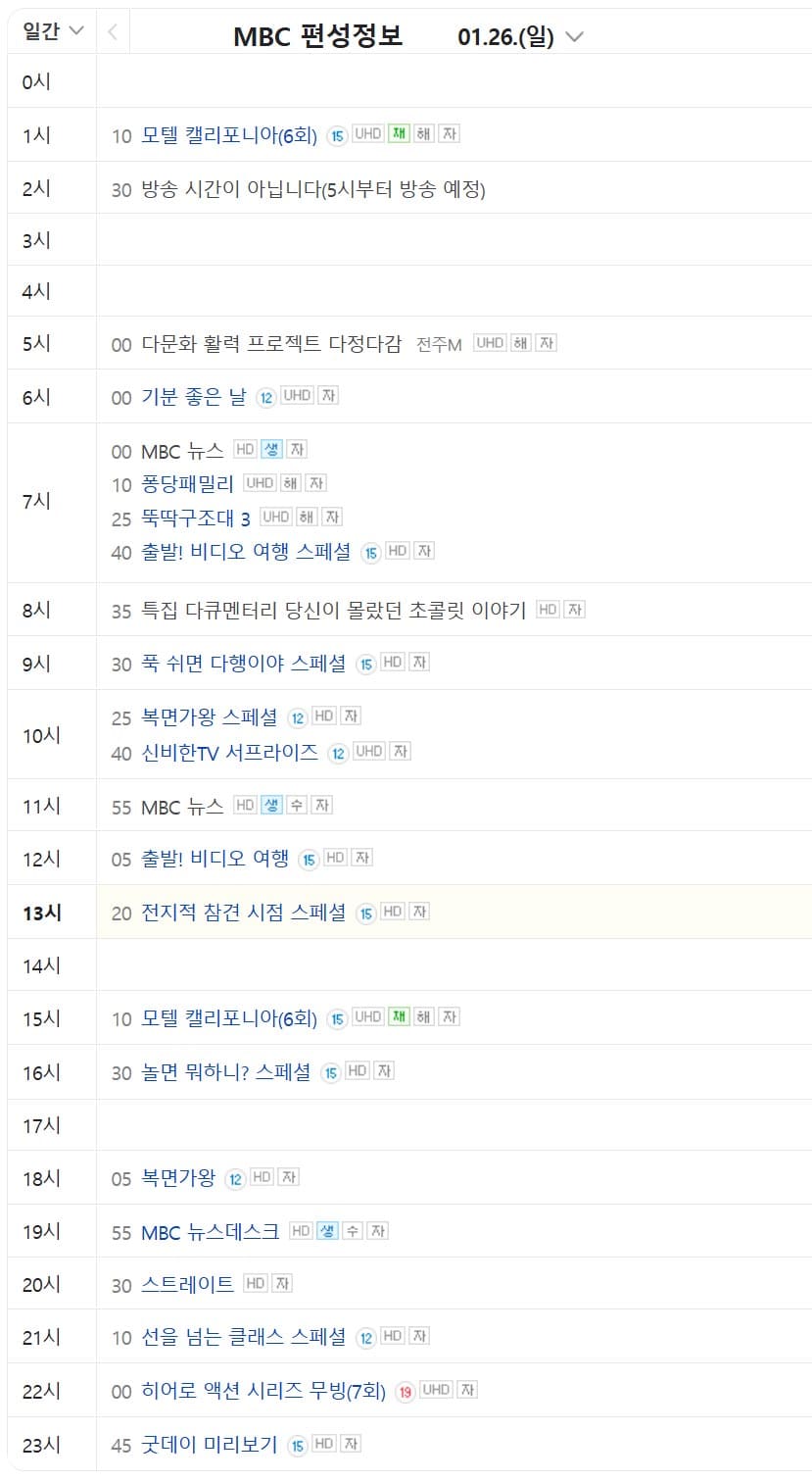 | 2025년 1월 25일 토요일 설 연휴 지상파 TV 편성표 (0) | 2025.01.24 |